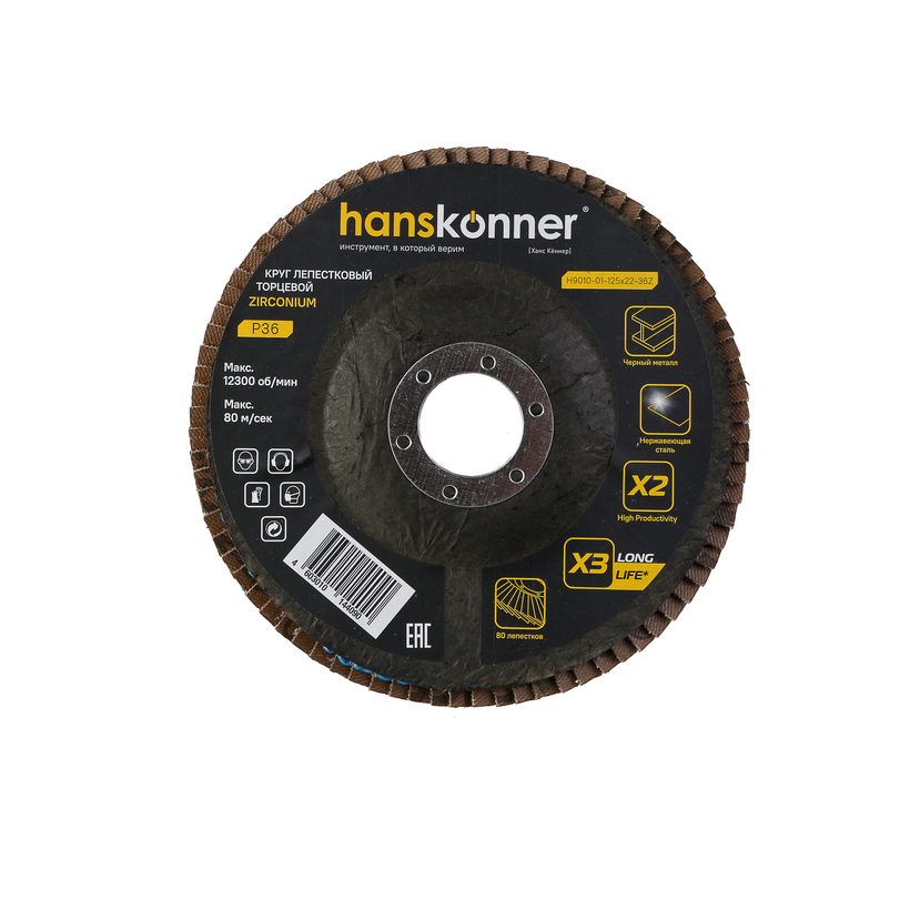 Круг зачистной лепестковый ЦИРКОНИЕВЫЙ 125х22, зерно 36, Hanskonner