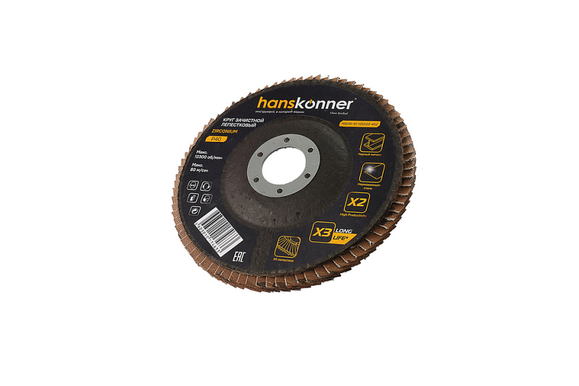 Круг зачистной лепестковый ЦИРКОНИЕВЫЙ 125х22, зерно 40, Hanskonner