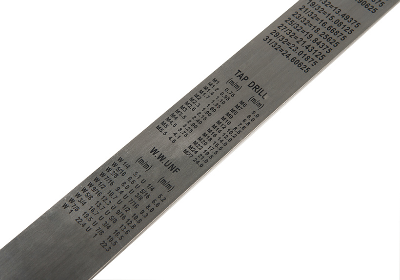 Двухсторонняя гравированная шкала облегчает работу по разметке.Антикоррозионное покрытие обеспечивает долговечность инструмента, а таблица величин, нанесенная на оборотную сторону линейки поможет в столярных работах.