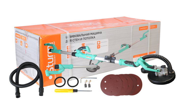 Шлифовальная машина для стен и потолка Sturm! DWS6011 — компактный и удобный электроинструмент для сухого шлифования штукатурки, гипсокартона и тому подобных материалов. В силу своего малого веса и регулируемой телескопической ручки, данная модель, обладает изрядной практичностью в своем применении. Также, на деле, выгодным отличием оказывается надежная защита электродвигателя от пыли.