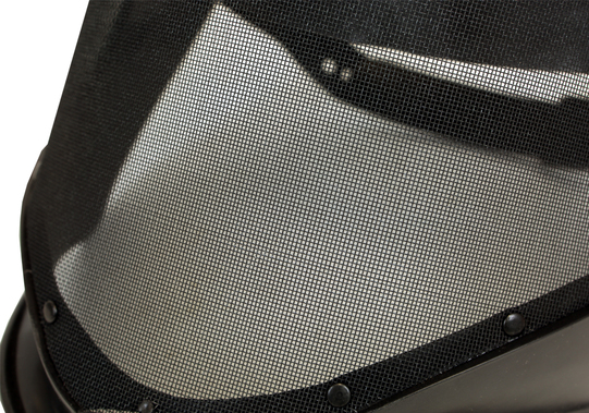 Экран из мелкоячеистой стальной сетки надежно защищает от крупных и мелких твердых высокоскоростных частиц (низкокинетический удар) удар с кинетической энергией до 0,84 Дж; отличительной особенностью щитка являются: вентиляционные свойства, горячий воздух не пропускается в органы дыхания, к лицу и глазам, из-за исключения запотевания лицевой части, щиток обеспечивает стабильный и устойчивый обзор; козырек и наголовное крепление изготовлены из материалов, устойчивых к воздействию высоких температур.