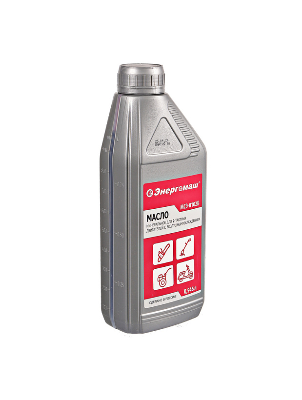 ЭНЕРГОМАШ МСЭ-0102Б  – всесезонное минеральное моторное масло нового поколения. Предназначено для двухтактных бензиновых двигателей воздушного охлаждения (с предварительным смешиванием топлива и масла) различных видов садовой техники: бензопил, мотокос, воздуходувок, газонокосилок, мотокультиваторов, мотоопрыскивателей и т д. Гарантирует надежную и долговечную работу двигателя и минимизирует необходимость частого технического обслуживания и ремонта. Предотвращает преждевременный износ и перегрев цилиндропоршневой группы, снижает образование нагара и отложений, закоксовывание поршневых колец, калильное зажигание, способствует уменьшению дымности и имеет низкую зольность. Благодаря наличию специального пакета присадок минеральное масло СОЮЗ МС2-0102Б обеспечивает облегченный запуск двигателя даже в условиях низких температур. Поставляется в пластиковых канистрах объемом 0.946 л.