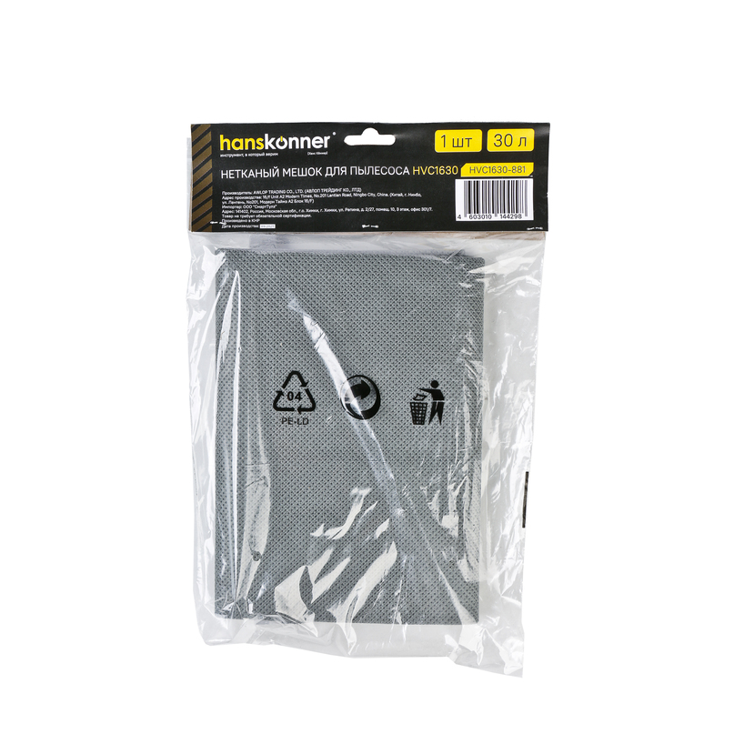 Нетканый мешок для пылесоса HVC1630, 30л Hanskonner, 1шт/уп