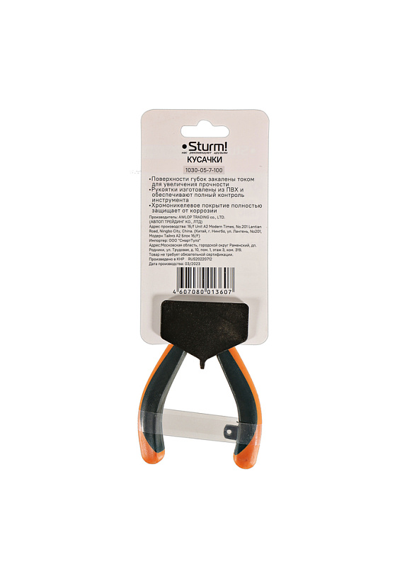 Кусачки, 100мм, TPR рукоятки, никелированные, Sturm!