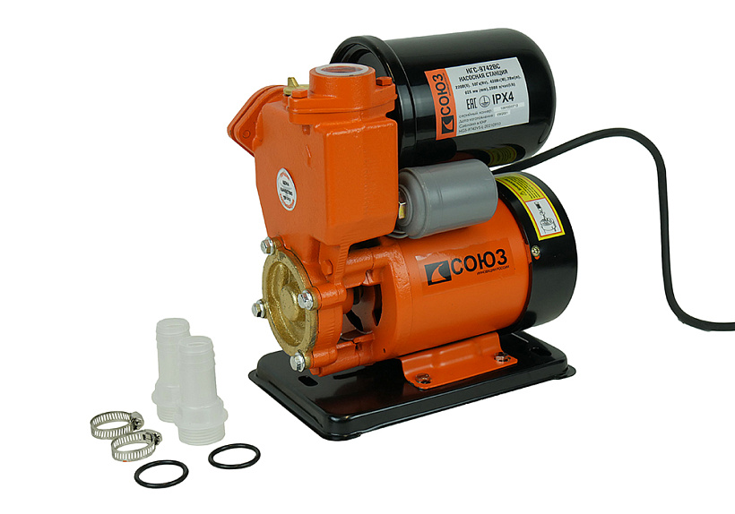 Насосная мини станция СОЮЗ НГС-9742ВС служит для создания давления в водопроводной сети загородных домов, дач, в автоматическом режиме поддерживает давление в заданном диапазоне, независимо от источника воды: водопровода, колодца, скважины.
