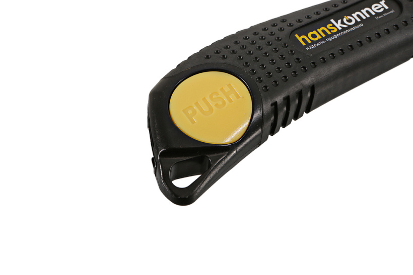 Строительный нож Hanskonner QuickReload (быстрая замена лезвия) подходит для работ с повышенными нагрузками, требующими особой точности и быстрой замены отрабо танного лезвия.. Благодаря сверхпрочной металлической направляющей достигается улучшенная устойчивость конструкции п ри давлении на инструмент. Лёгкий и прочный корпус из высококлассных материалов удобно лежит в руке, а текстурирован ная обрезиненная поверхность с упором под большой палец обеспечивает полный контроль инструмента. Лезвие из высо кокачественной стали SK2 c трёхгранной заточкой и дополнительной обработкой лазером служит в 5 раз дольше стан дартного. Уникальный запатентованный механизм быстрой блокировки/разблокировки направляющей позволит легко заменить лезвие и максимально оперативно вернуться к работе..
