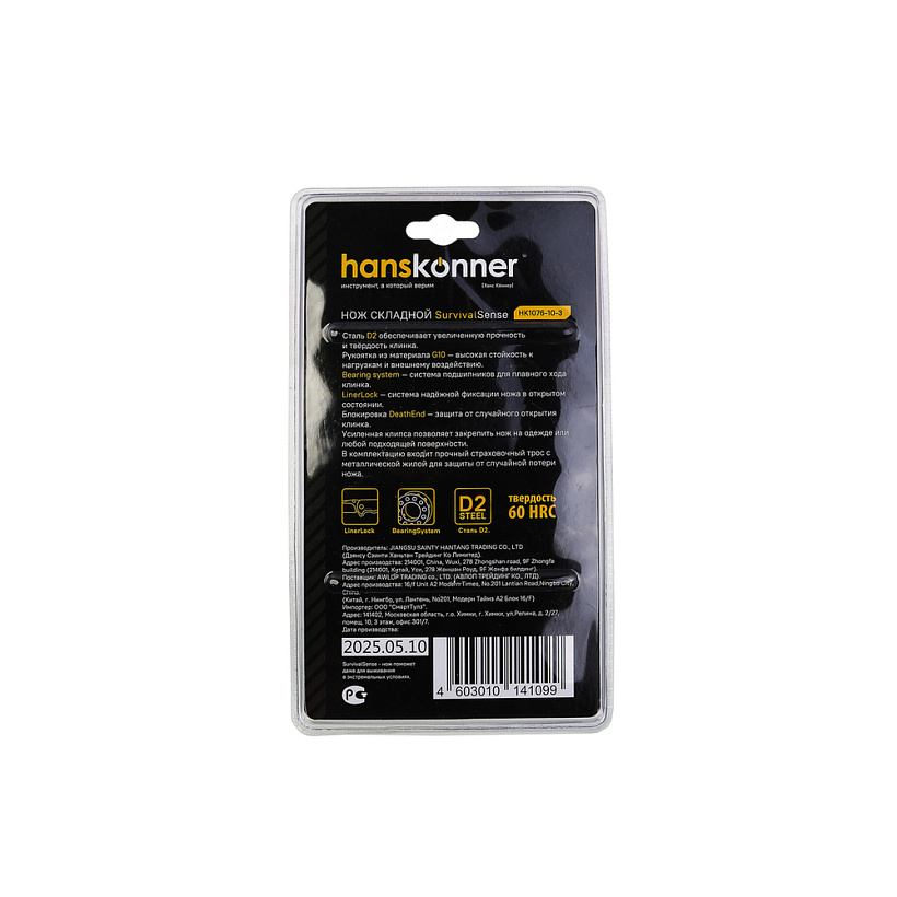 Нож складной, лезвие 85мм, сталь D2, рукоятка G10, hanskonner