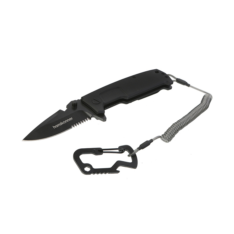 В комплектацию входит прочный страховочный трос с металлической жилой для защиты от случайной потери ножа