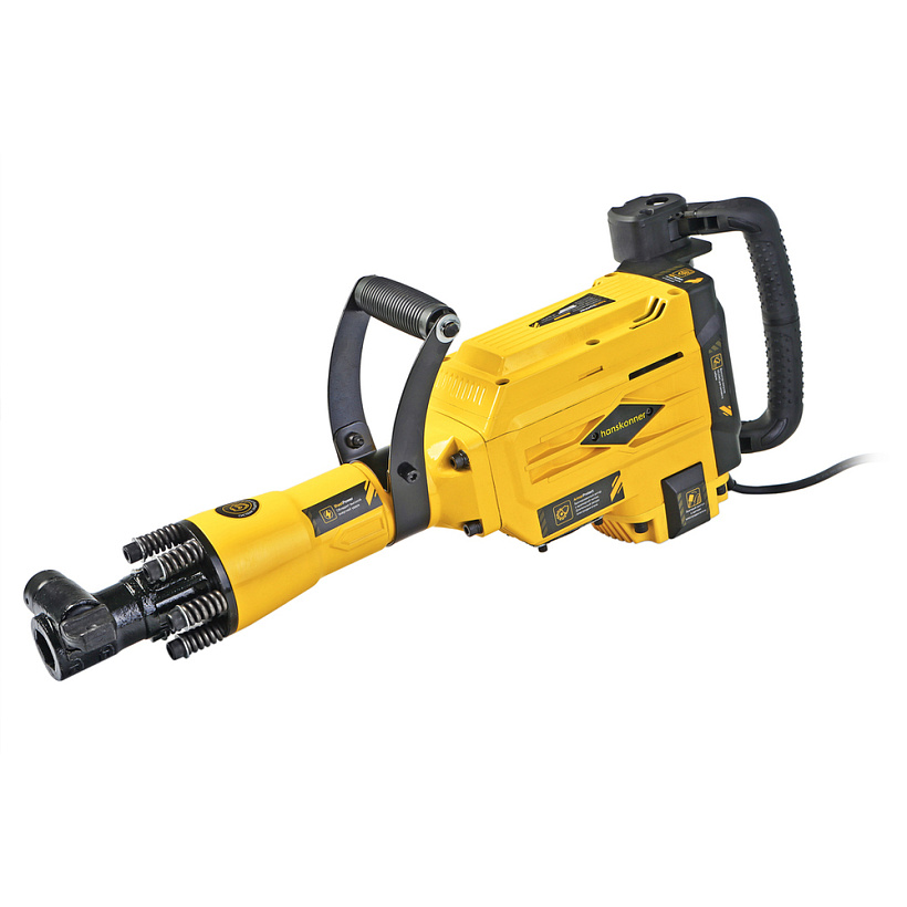 Hanskonner HRH2048VC – мощный и производительный отбойный молоток с типом патрона HEX. Предназначен для разрушения конструкций из бетона, железобетона, кирпича и камня, долбления асфальтовых, бетонных и плиточных покрытий. Инструмент обладает отличной развесовкой, за счет чего достигается его уверенный контроль, а также тщательно проработанной эргономикой. Регулируемая на 360° дополнительная D-образная рукоять обеспечивает надежный хват в любом положении отбойного молотка, а наличие антивибрационной задней рукояти способствует снижению нагрузки на оператора при работе. Модель оснащена 2100 Вт электродвигателем и мощным ударным механизмом, развивающим энергию удара в 50 Дж – это позволяет быстро и эффективно справляться с задачами по демонтажу различной сложности. Высокий ресурс инструмента при работе в особо тяжелых условиях гарантируют бронированный арамидной нитью электродвигатель ArmorProtect и закаленные шестерни редуктора. Для простоты обслуживания модель имеет функцию быстрого доступа к щеткам, способствующую их замене без разбора элементов корпуса. Длинный пятиметровый сетевой кабель 5VelcroRubber дает возможность расширить рабочую зону до 78 м2 без необходимости применения дополнительного удлинителя. Наличие специального фиксатора-липучки позволяет быстро и просто фиксировать кабель в транспортном положении. Удобство хранения и перемещения отбойного молотка с места на место обеспечивает штатный металлический кейс-тележка.