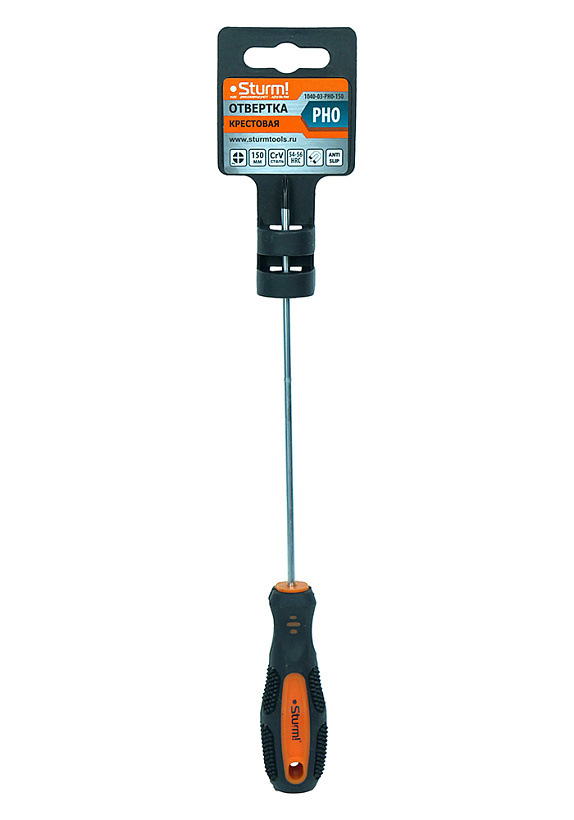 Отвертка крестовая PH0x150мм, CrV, магнитный наконечник Sturm!