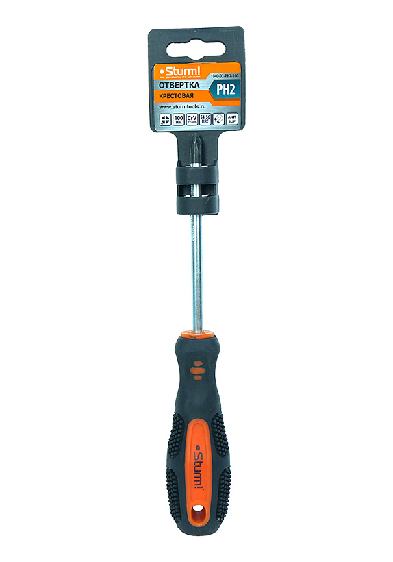 Отвертка крестовая PH2x100мм, CrV, магнитный наконечник Sturm!