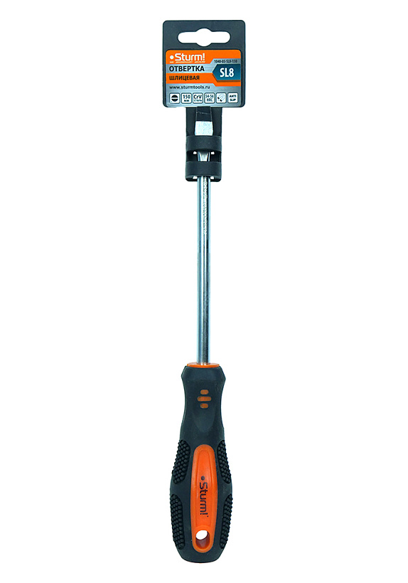 Отвертка плоский шлиц SL8х150мм, CrV, магнитный наконечник Sturm!