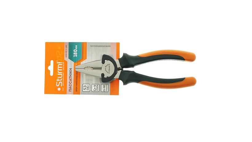 Пассатижи, 180мм, TPR рукоятки, никелированные, Sturm!
