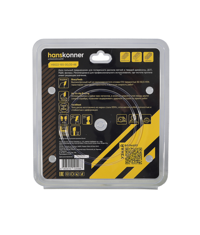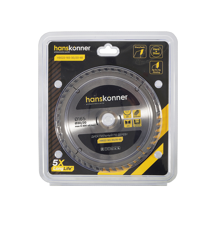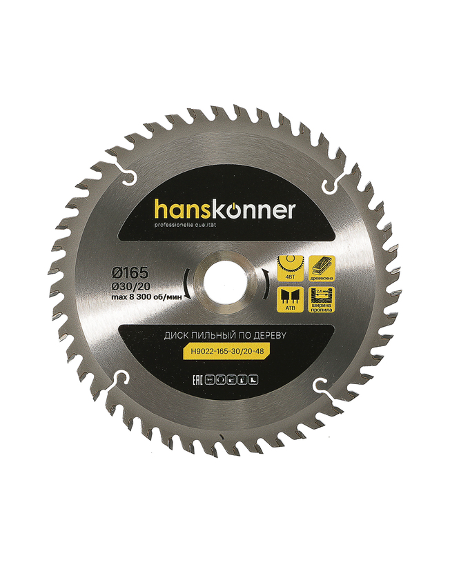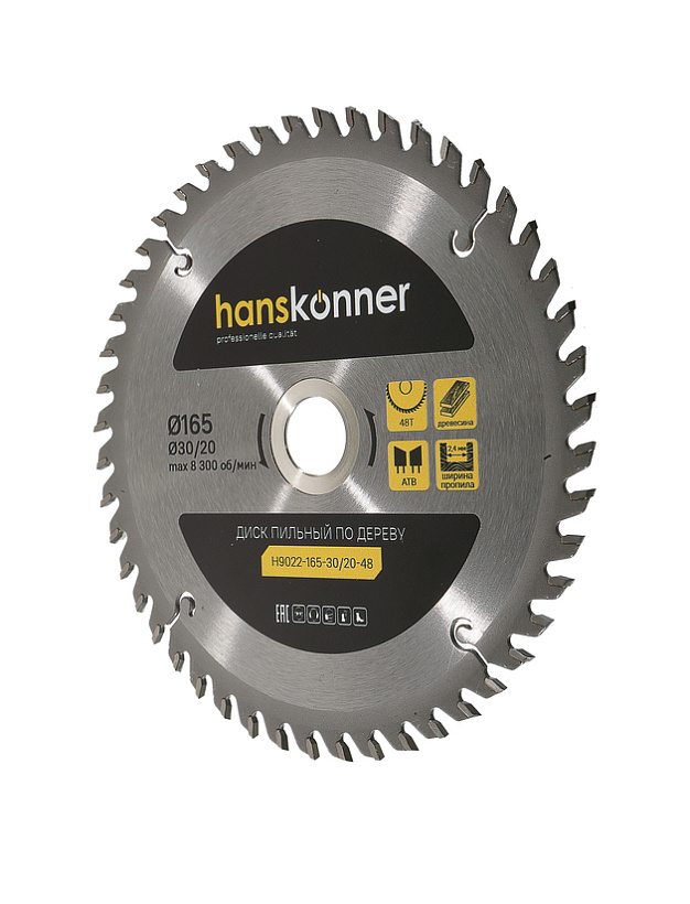 Пильный диск по дереву 165x30/20мм, 48 зубьев, Hanskonner
