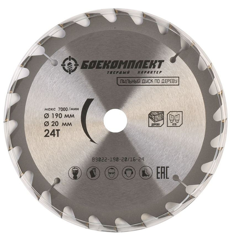 Пильный диск по дереву 190x20/16мм, 24 зубьев, БОЕКОМПЛЕКТ