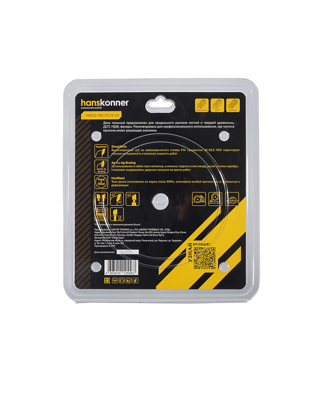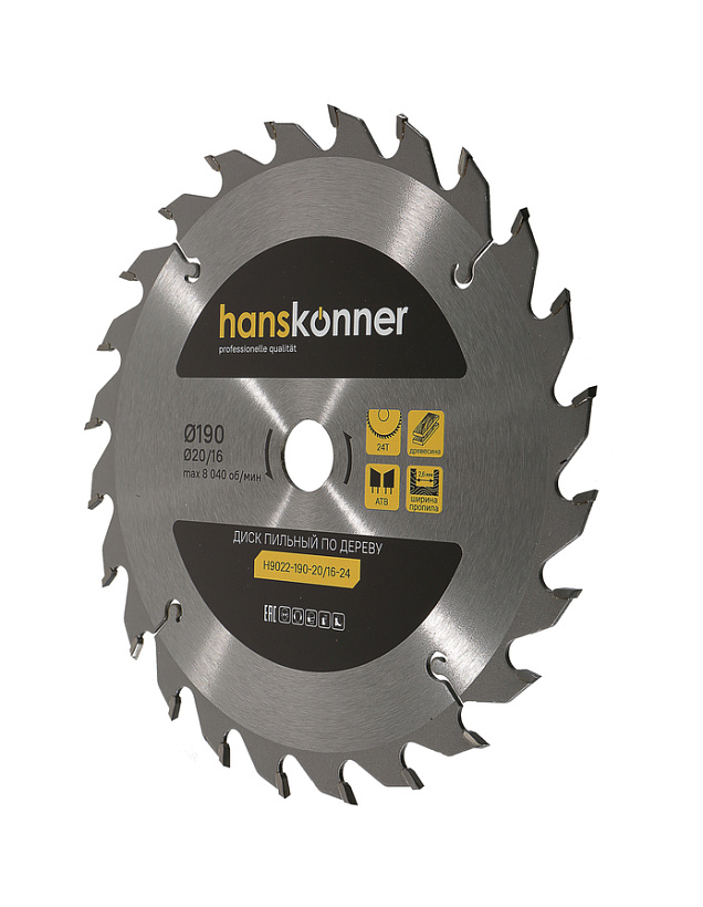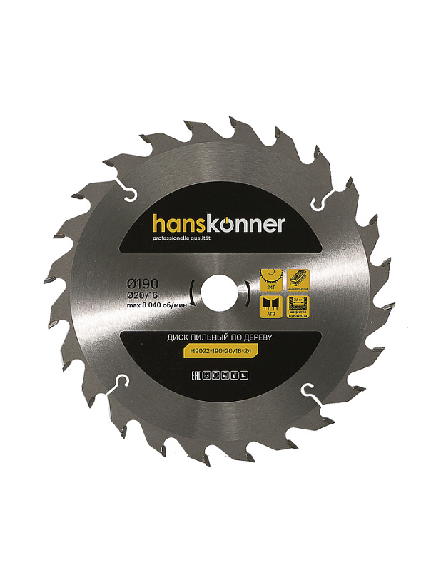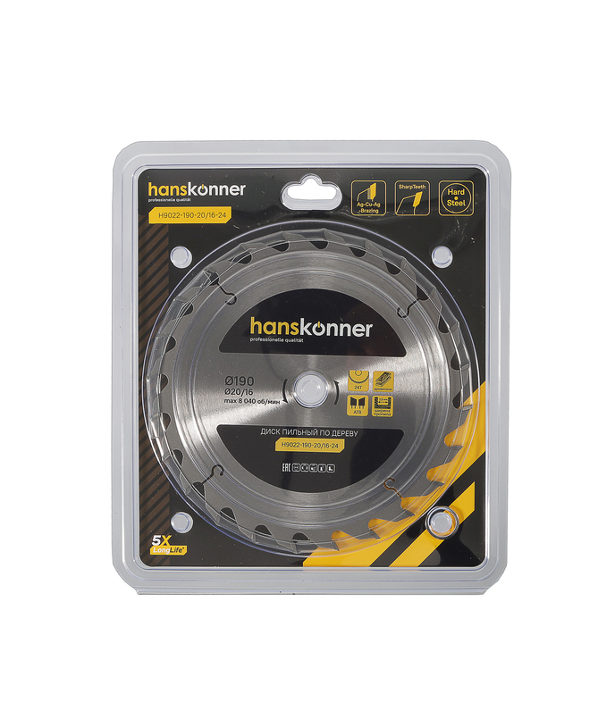 Пильный диск по дереву 190x20/16мм, 24 зубьев, Hanskonner