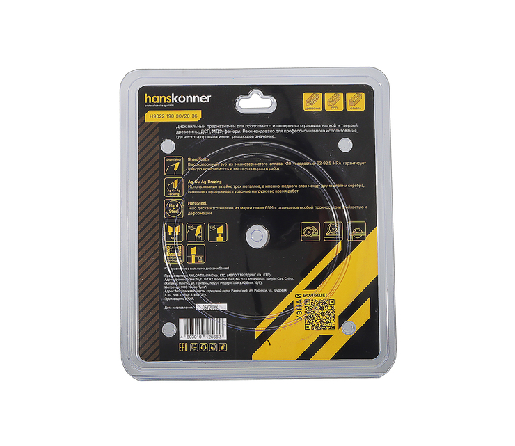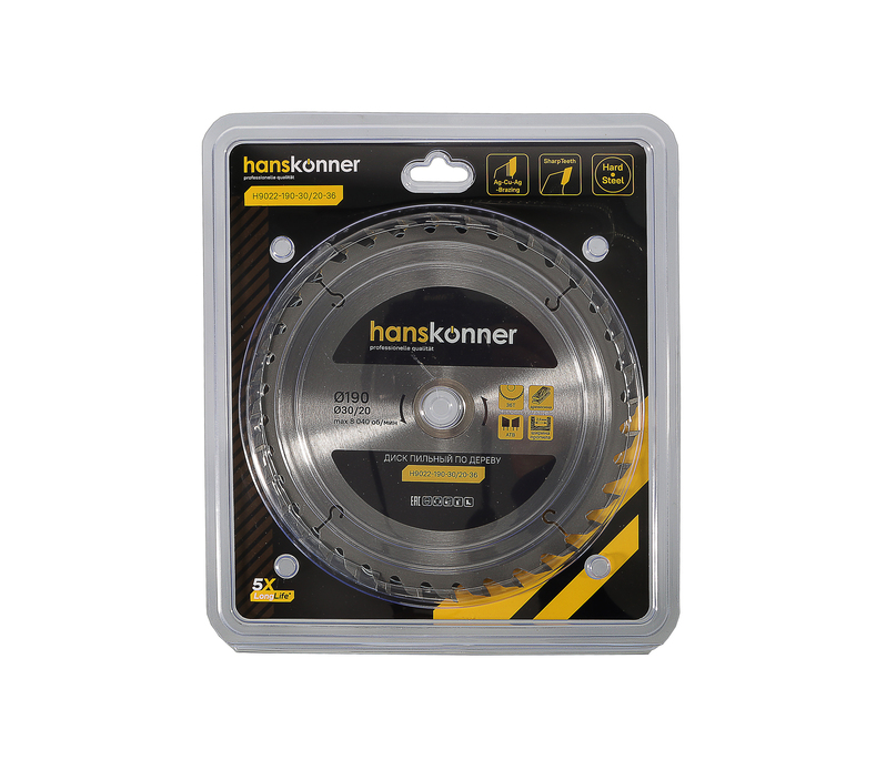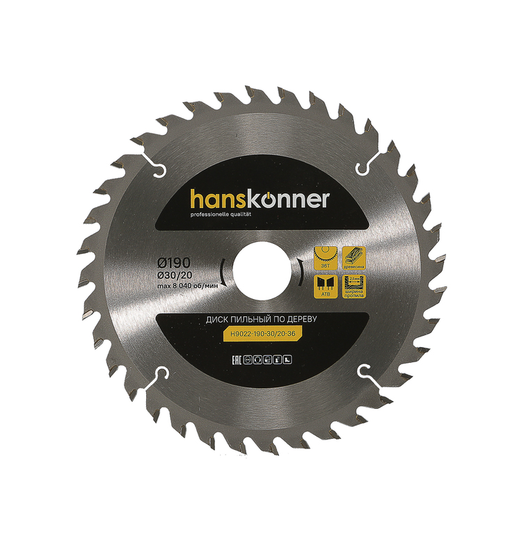 Пильный диск по дереву 190x30мм, 36 зубьев, Hanskonner