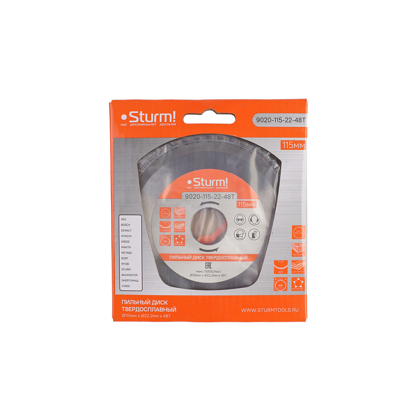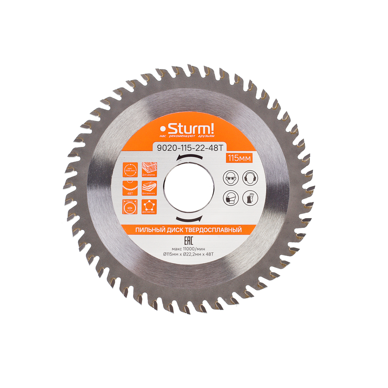 Пильный диск, размер 115x22x48 зубьев, твердосплавные напайки Sturm!
