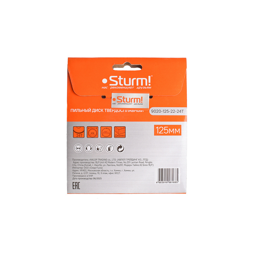 Пильный диск, размер 125x22x24 зуба, твердосплавные напайки Sturm!