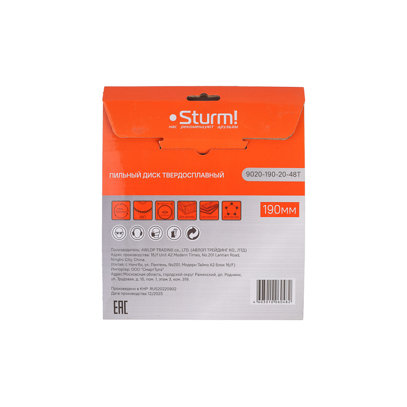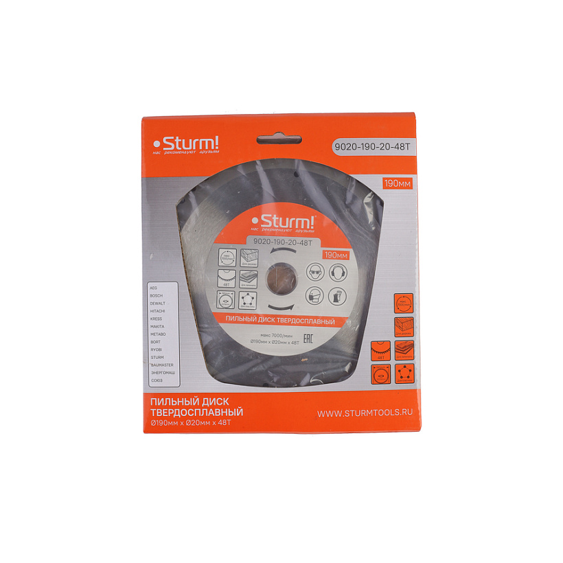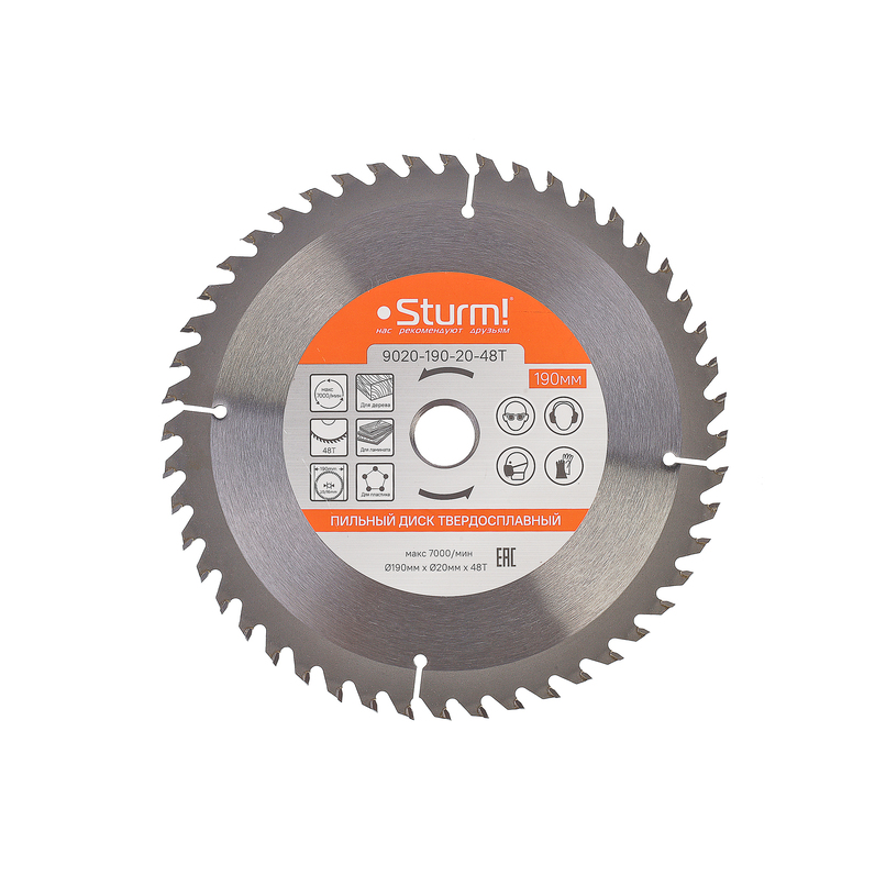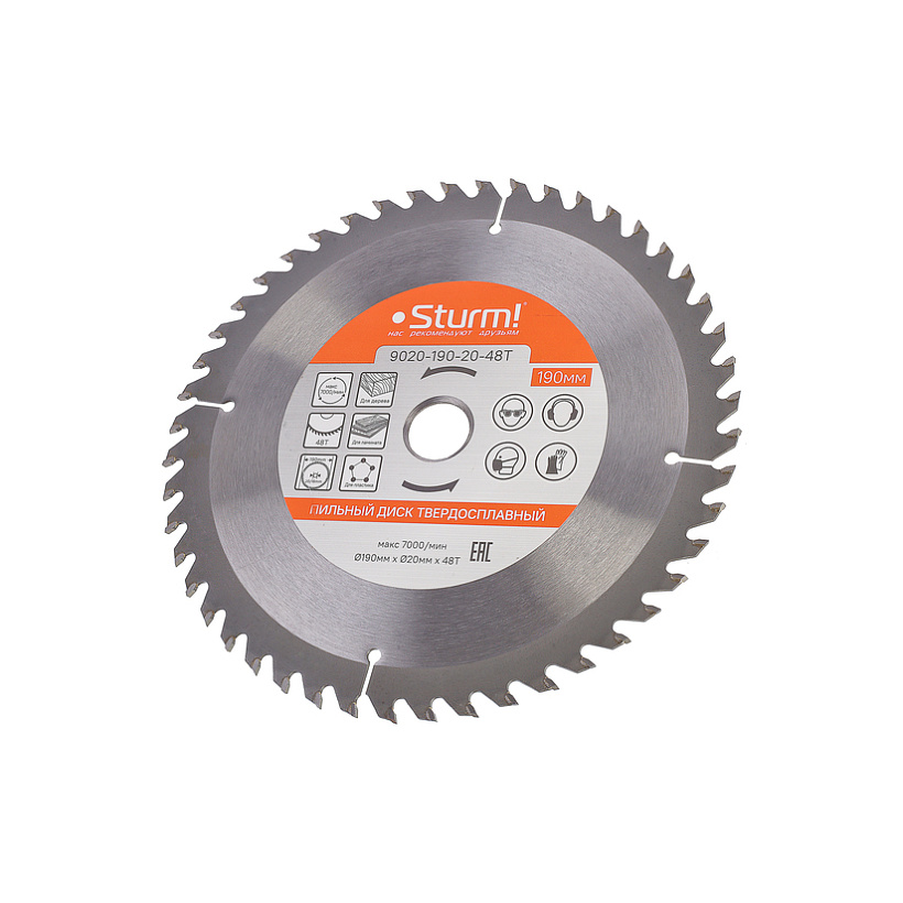 Пильный диск, размер 190x20/16x48 зубьев, твердосплавные напайки Sturm!