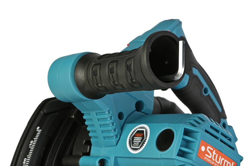 Пила отличается эргономичностью вспомогательной и основной рукояти с прочными резиновыми вставками. Чистота рабочей зоны сохраняется с помощью встроенного патрубка к которому возможно подключить пылесос. В пользу точности и качества резанья в наличии алюминиевая опорная подошва. Для безопасной работы инструмент оборудован защитой от непреднамеренного пуска.
