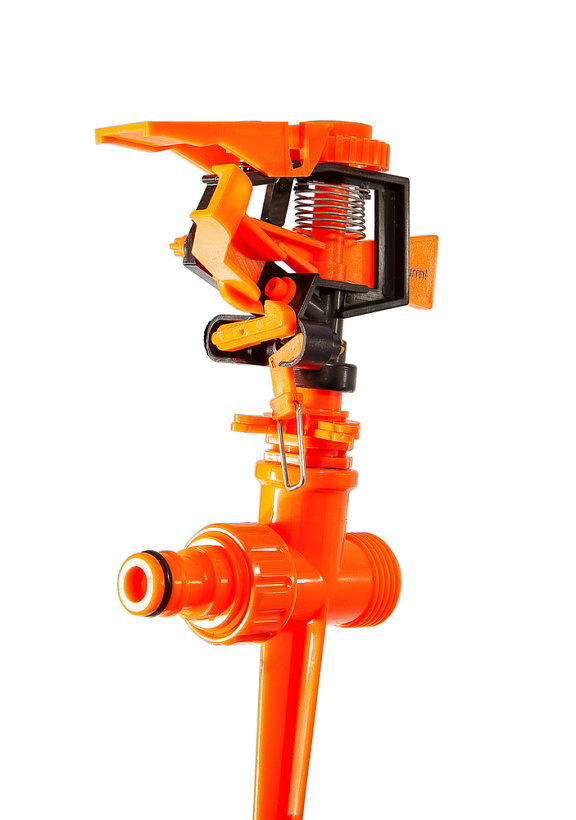 Разбрызгиватель (дождеватель) импульсный устанавливается в грунт при помощи колышка, который является неотделимой частью инструмента. Предназначен для орошения лужаек, газонов, огорода, цветника.