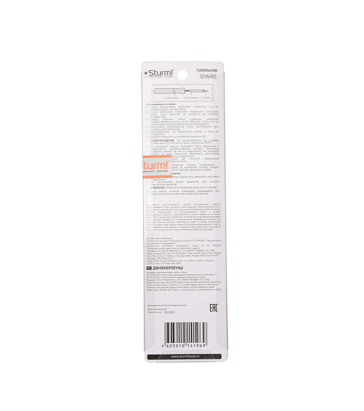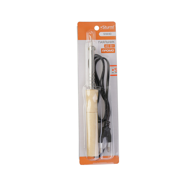 Электропаяльник 40ВТ, ДЕРЕВЯННАЯ рукоятка, Sturm! PROMO