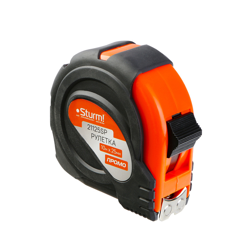 Рулетка 10x25мм, обрезиненная, магнит на зацепе, Sturm!