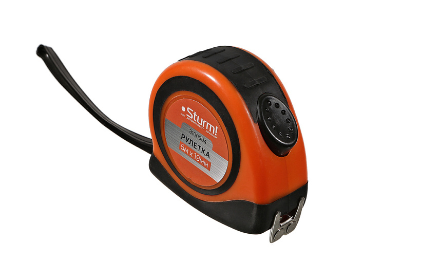 Рулетка 5x19мм, автостоп, двухсторонняя шкала, магнит на зацепе, Sturm!