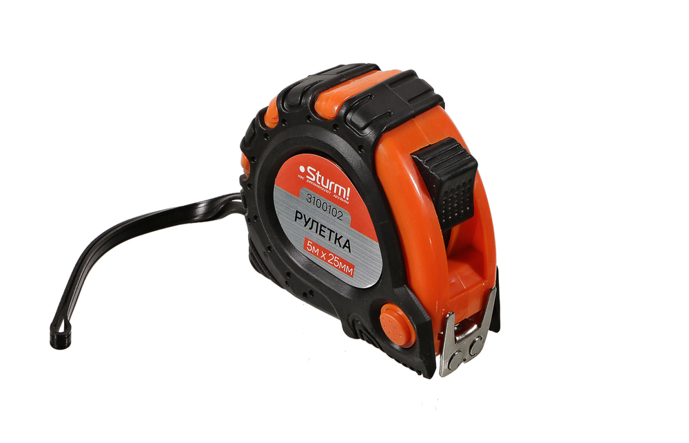 Рулетка 5x25мм, обрезиненная, магнит на зацепе, Sturm!