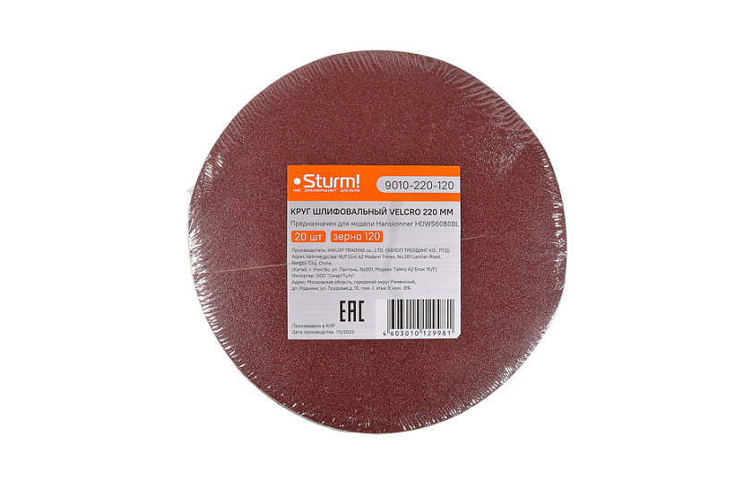 Круг шлифовальный абразивный, d=220мм, зерно120, 20шт, для HDWS6080BL, Sturm!