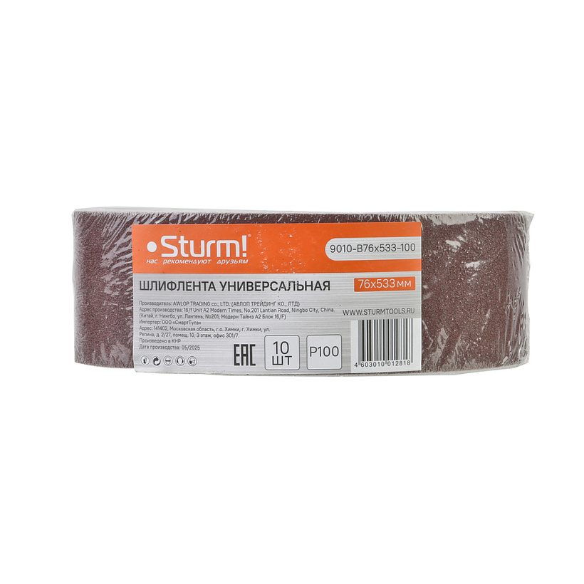 Шлифлента, 76x533мм, Р100, 10 шт, Sturm!