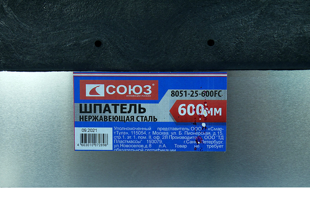 8051-25-600FC Шпатель, 600мм, нержавеющая сталь, пластиковая рукоятка, СОЮЗ