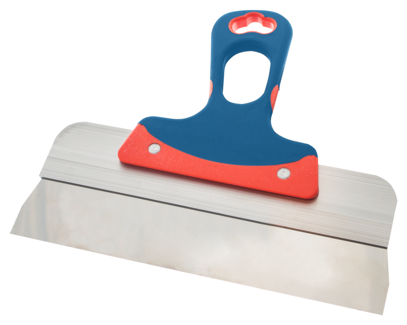 Инструмент имеет прочное трапецевидное лезвие, суженное у основания ручки. Полотно изготовлено из нержавеющей стали. Двухкомпонентная рукоятка нескользящая и приятная на ощупь.Удобство работ и хранение - обеспечивает эргономичная пластиковая ручка комфортная при удержании и ведении шпателя. Для удобства хранения у пластиковой ручки имеется отверстие для подвеса.