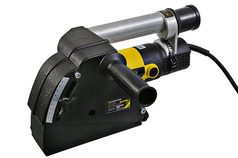Hanskonner HAG915S – производительный штроборез под рабочий диаметр дисков 150 мм. Предназначен для резки пазов (штроб) глубиной 0–44 мм и шириной 9–45 мм в бетоне, кирпиче, камне. Обладает оптимальными массогабаритными показателями и выверенными пропорциями, что способствует удобству использования в том числе и в местах с затрудненным доступом. Инструмент оснащен мощным 1500 Вт электромотором с защитой от перегрузки OverloadProtect. Важной особенностью модели Hanskonner HAG915S является наличие электронного блока EPM (Electronic Power Manager), который позволяет поддерживать стабильную частоту вращения на валу шпинделя под нагрузкой, а также обеспечивает плавный запуск. Для обеспечения высокой надежности инструмента особое внимание уделено наиболее нагруженным элементам конструкции: электромотор имеет специальное бронирование ротора и статора ArmorProtect, гарантирующее защиту обмоток двигателя от пыли и частиц абразива, повышенной прочностью обладают шестерни редуктора, используются высококачественные фирменные подшипники NSK. Удобству обслуживания способствует функция быстрого доступа к щеткам, позволяющая производить их замену без демонтажа элементов корпуса. Сетевой кабель 4VelcroRubber имеет резиновую изоляцию, что сохраняет его гибкость и эластичность в условиях низких температур, а четырехметровая длина кабеля позволяет использовать инструмент без применения дополнительного сетевого удлинителя, обеспечивая рабочую зону площадью до 50 м2. В штатную комплектацию штробореза входят: прочный пластиковый кейс, комплект запасных щеток, а также патрубок для подключения строительного пылесоса.