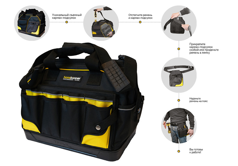 Сумка для инструментов, съёмный карман-подсумок, 46 карманов, Hanskonner