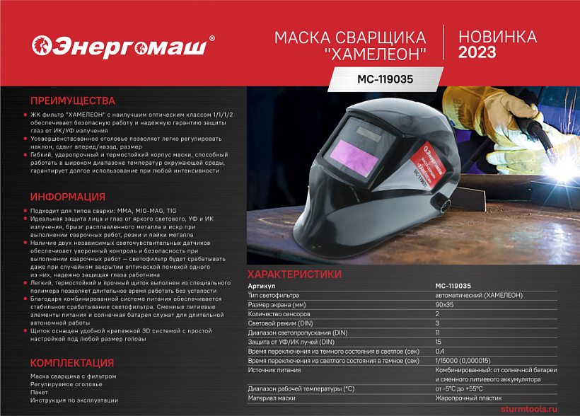 Маска имеет функциональное оснащение, прочный щиток удобную систему крепления и небольшой вес.