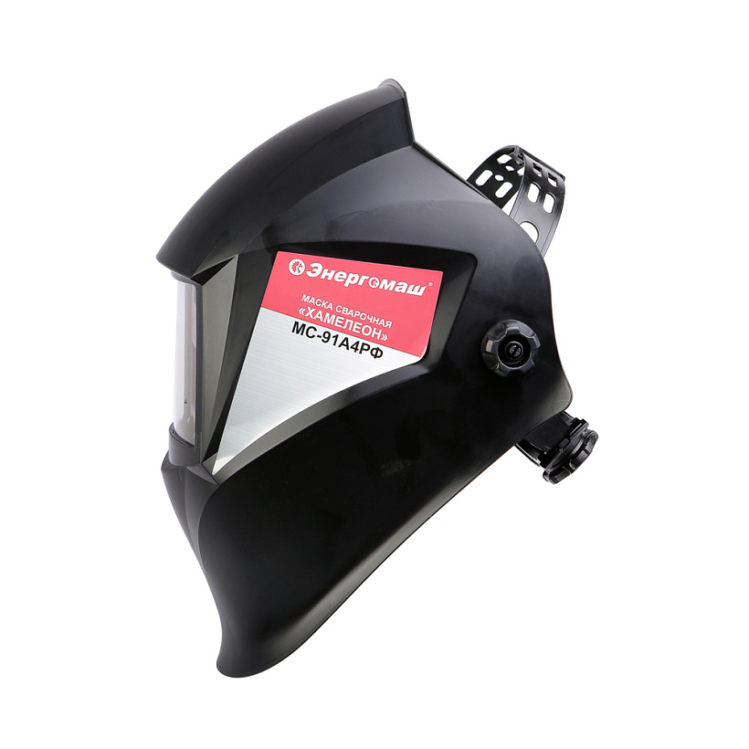 Сварочная маска Энергомаш МС-91А4РФ. Простая в использовании модель для индивидуальной защиты как от вредного инфракрасного и ультрафиолетового излучения, так и от брызг расплавленного металла.