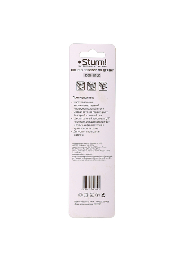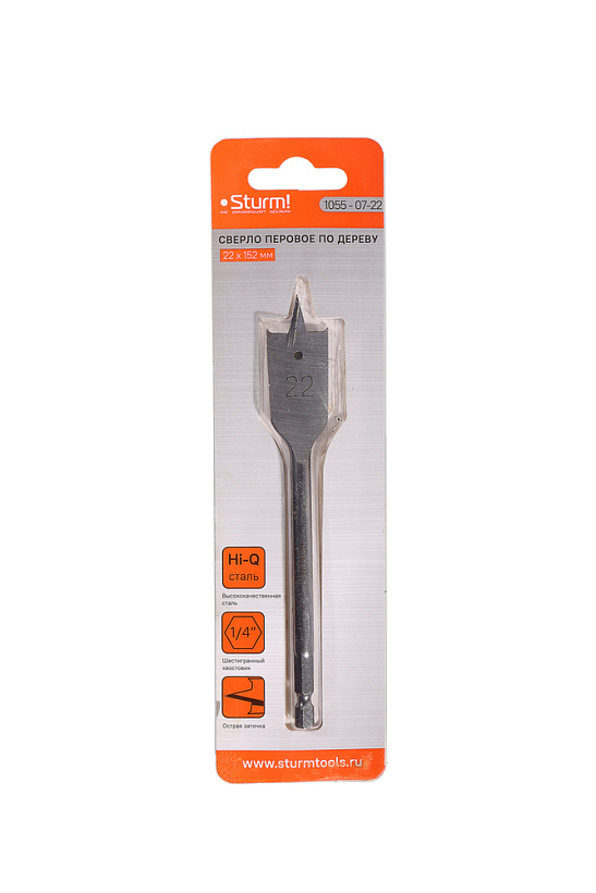 Сверло перовое по дереву, 22мм, шестигранный хвостовик, Sturm!