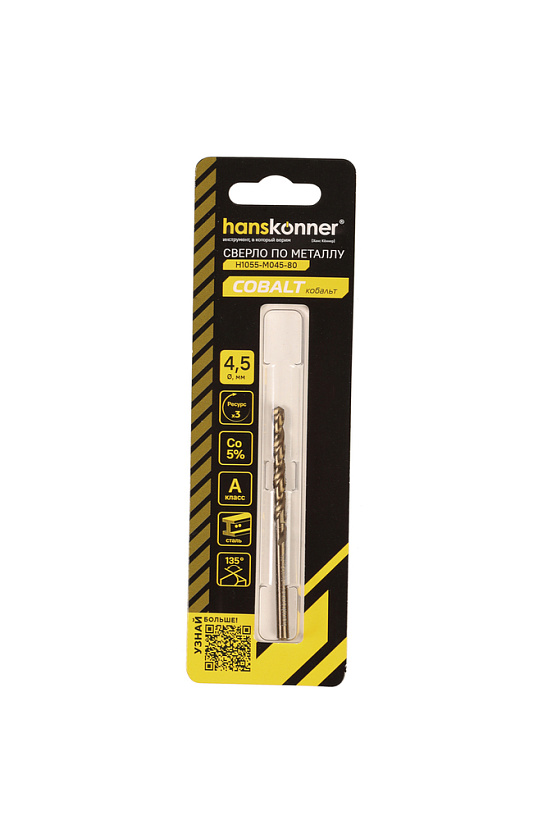 Сверло по металлу COBALT 4,5х80мм Hanskonner