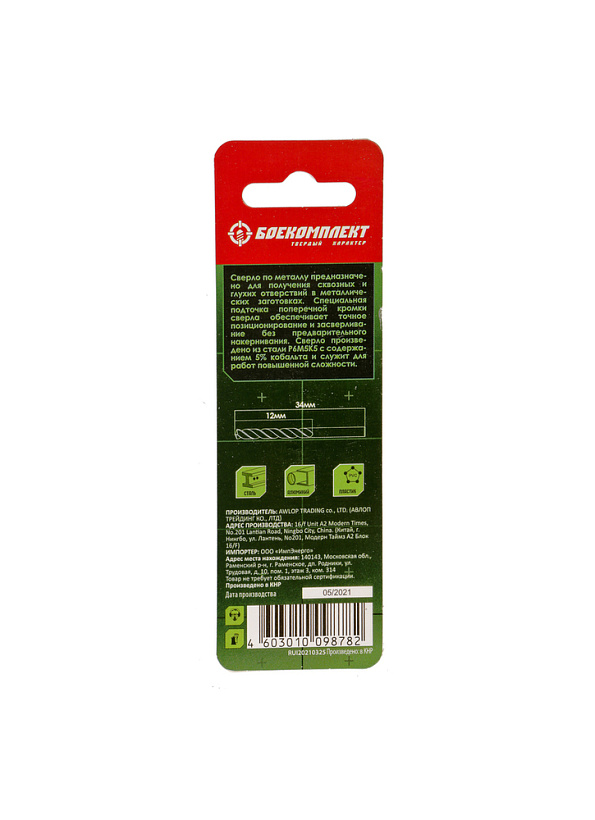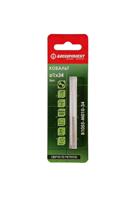 Сверло по металлу Кобальт 1,0х34мм 2шт БОЕКОМПЛЕКТ
