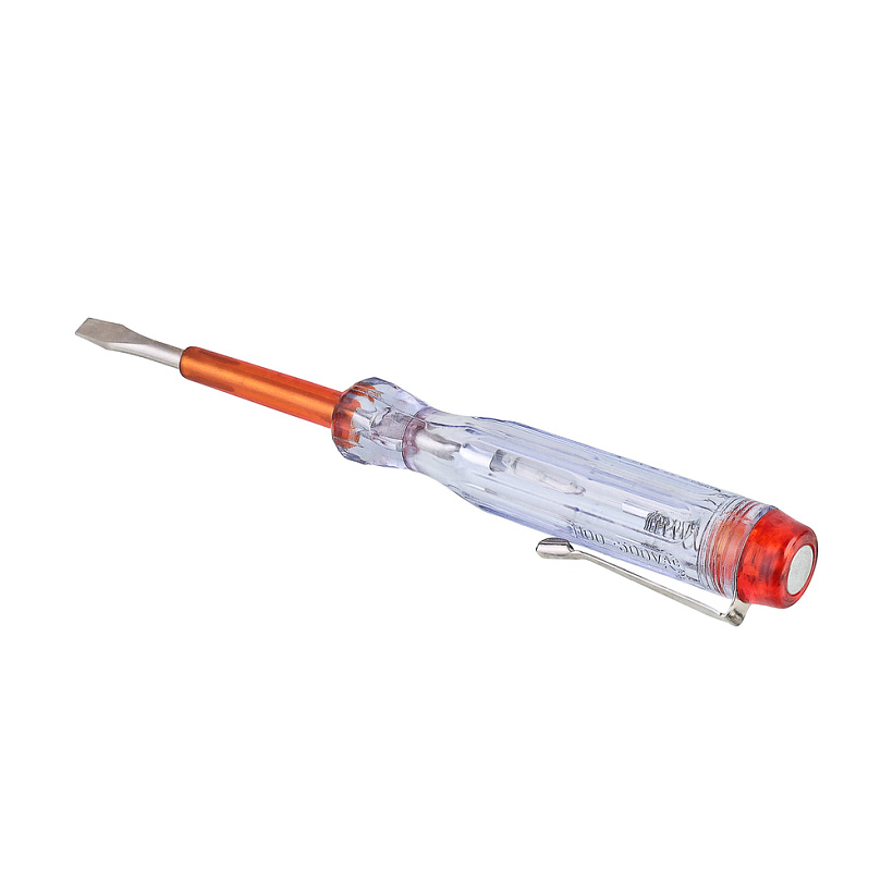 Рукоятка отверток-индикаторов изготовлена из прозрачной ацетилцеллюлозы и хорошо лежит в руке. На рукоятке отвертки-индикатора 1040-02-VT присутствует крепление к карману или ремню для более удобной переноски. Стержень выполнен из высококачественной стали и покрыт изоляцией по всей длине, имеет прямое жало.