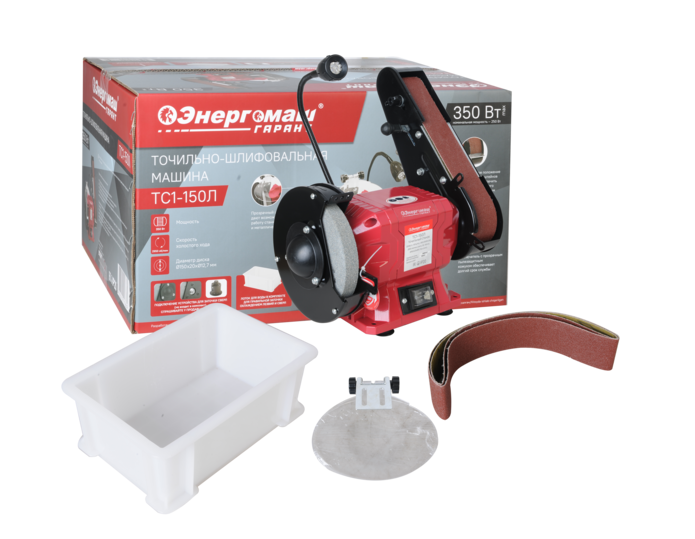 ТС1-150Л является комбинированным устройством для грубой и окончательной шлифовки металлических, пластмассовых и прочих предметов с использованием шлифовального диска и шлифовальной ленты. Точило имеет черновой шлифовальный круг и чистовую шлифовальную ленту, с защитными кожухами и искрозащитным экраном, регулируемыми рабочими упорами, что делает работу со станком удобной и безопасной.