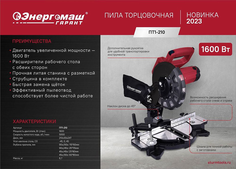 Торцовочная пила Энергомаш Гарант ПТ1-210