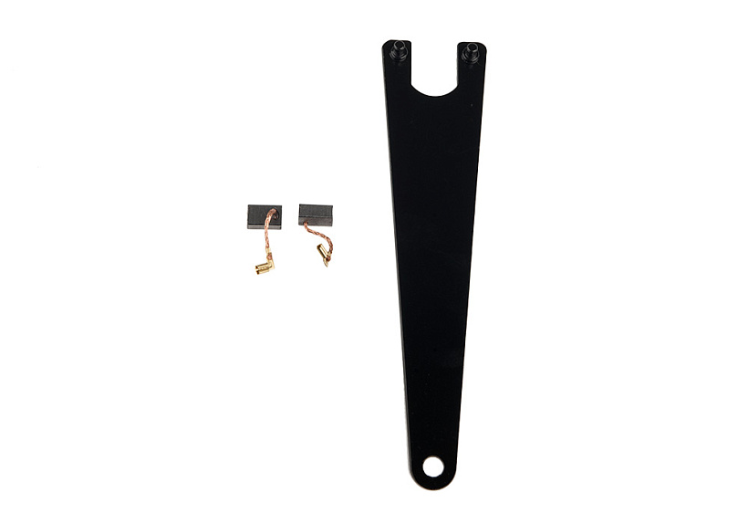 Гайки для крепления диска, комплект щеток, дополнительная рукоятка, ключ, защитный кожух в комплекте.