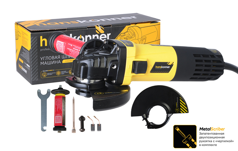 Hanskonner HAG90121P – универсальная болгарка (УШМ) под рабочий диаметр диска 125 мм. Модель отличают оптимальные массогабаритные показатели и выверенные пропорции, благодаря чему она максимальна удобна в хвате и отлично контролируется даже одной рукой. Эффективную эксплуатацию в условиях с затрудненным доступом гарантирует применение клиновидного корпуса редуктора NarrowBody. Инструмент оснащен мощным 1200 Вт электродвигателем StoneCut, рассчитанным на длительную непрерывную работу и обладающим защитой от пыли и абразивных частиц DustProtect, что дает возможность уверенно использовать болгарку при работах с камнем или керамической плиткой. Кроме того, модель получила усиленный редуктор с закаленными шестернями, высококачественные фирменные шарикоподшипники NSK и C&U, а также систему поддержания постоянного прижимного усилия щеток ClockSpring, создающую стабильный контакт независимо от уровня щеточного износа. Корпус болгарки изготовлен с использованием нейлона, стойкого к ударам и низким температурам. Для удобства пользователя, модель Hanskonner HAG90121P снабжена быстросъемным защитным кожухом FastAdapt, который надежно фиксируется безынструментальным способом, при помощи специального зажимного рычага, а также удобной патентованной рукоятью со специальным твердосплавным карандашом, для нанесения разметки на поверхности любой сложности. Сетевой кабель 4VelcroRubber имеет резиновую изоляцию, что сохраняет его гибкость и эластичность в условиях низких температур, а четырехметровая длина кабеля дает возможность использовать инструмент без применения дополнительного сетевого удлинителя, обеспечивая рабочую зону площадью до 50 квадратных метров.