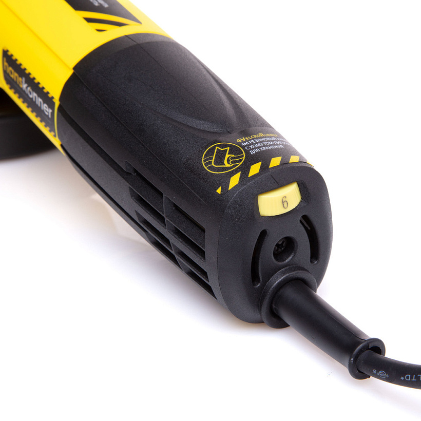 Hanskonner HAG9012TЕS – компактная универсальная болгарка (УШМ) под рабочий диаметр диска 125 мм. Обладает оптимальными массово-габаритными показателями и выверенными пропорциями: малый диаметр корпуса гарантирует максимальное удобство хвата, нейтральный центр тяжести позволяет уверенно контролировать инструмент в процессе работы даже одной рукой, низкопрофильный корпус редуктора клиновидной формы облегчает работу в местах с трудным доступом. Главная особенность модели – наличие блока константной электроники EPM (Electronic Power Manager), который обеспечивает поддержание стабильной частоты вращения на валу шпинделя, препятствуя падению оборотов под нагрузкой. Применение данной опции позволяет повысить производительность работы в среднем на 20%. К числу достоинств Hanskonner HAG9012TЕS стоит отнести и систему плавного пуска – она снижает пусковые нагрузки на двигатель и предотвращает рывок инструмента в момент включения, а также электронную регулировку оборотов (4000 – 10000 об / мин), благодаря которой достигается оптимальный подбор частоты вращения в зависимости от типа используемой оснастки и обрабатываемого материала .Инструмент оснащен мощным 1100 Вт электромотором со специальным термостойким покрытием и дополнительной защитой от пыли и абразивных частиц, усиленным редуктором с шестернями, подверженными закалке, а также, фирменными пылезащищенными подшипниками C&U – все это обеспечивает достаточный запас по надежности. Сетевой кабель имеет резиновую изоляцию, что позволяет сохранить его гибкость и эластичность в условиях низких температур, а четырехметровая длина кабеля обеспечивает рабочую зону площадью до 50 квадратных метров, исключая необходимость задействовать дополнительный сетевой удлинитель. Модель проста в эксплуатации и обслуживании. Снабжена быстросъемным защитным кожухом, надежно фиксирующимся при помощи специального зажимного рычага, за счет чего возможна быстрая смена положения кожуха без помощи вспомогательного инструмента, а также удобной патентованной рукоятью со специальным твердосплавным карандашом для нанесения разметки на поверхности любой сложности, включая ржавые, влажные и маслянистые. Комплектуется штатным пластмассовым кейсом для удобства хранения и транспортировки.