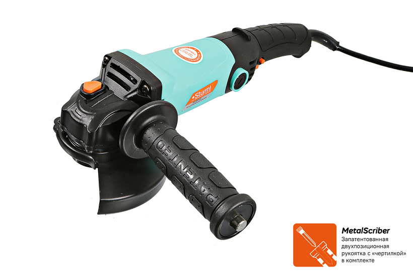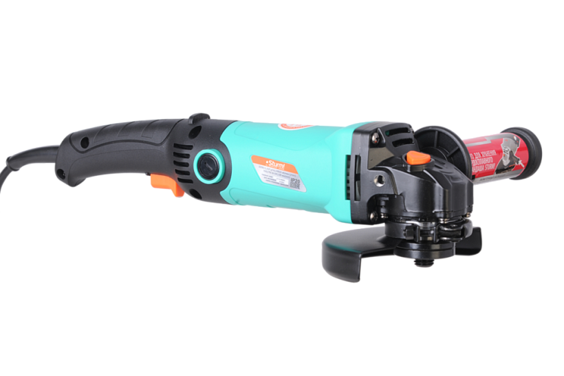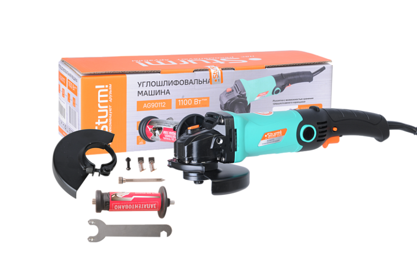 Sturm AG90112 – универсальная болгарка (УШМ) бытового назначения под рабочий диаметр диска 125 мм. Имеет компоновку с длинной рукоятью и рассчитана под двуручный хват. Благодаря компактным размерам и низкопрофильному корпусу редуктора клиновидной формы инструмент удобен в использовании, особенно при работах в местах с трудным доступом. Модель оснащена двигателем мощностью в 1100 Вт со специальным термостойким покрытием, усиленным высокопрочным редуктором, а также качественными пылезащищенными подшипниками – все это обеспечивает достаточный запас по надежности. Предусмотрена функция быстрого доступа к щеткам, позволяющая их замену без разбора элементов корпуса. Для удобства пользователя модель снабжена фиксацией пусковой кнопки быстросъемным защитным кожухом, который надежно фиксируется при помощи специального зажимного рычага – это дает возможность при необходимости быстро изменять положение кожуха, а также удобной патентованной рукоятью со специальным твердосплавным карандашом для нанесения разметки на поверхности любой сложности, включая ржавые, влажные и маслянистые.