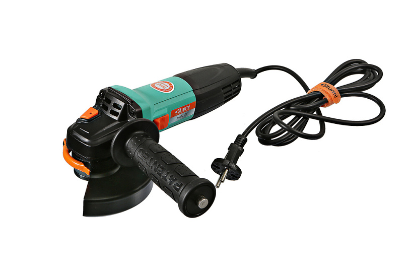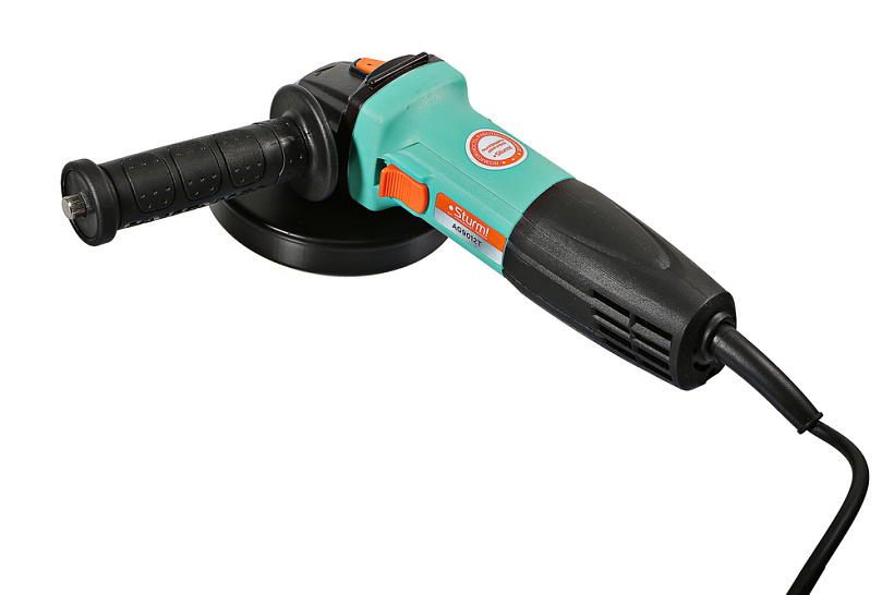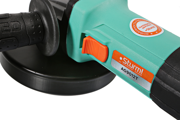 Sturm AG9012T – компактная универсальная болгарка (УШМ) бытового назначения под рабочий диаметр диска 125 мм. Модель обладает оптимальными массово-габаритными показателями и выверенными пропорциями: малый диаметр корпуса обеспечивает максимальное удобство хвата, нейтральный центр тяжести позволяет уверенно контролировать инструмент в процессе работы даже одной рукой, низкопрофильный корпус редуктора клиновидной формы облегчает работу в местах с трудным доступом.  Инструмент оснащен мощным 1000 Вт электромотором со специальным термостойким покрытием, усиленным высокопрочным редуктором, а также качественными пылезащищенными подшипниками – все это обеспечивает достаточный запас по надежности. Кроме того, применение шестерен с конической формой зуба позволило снизить уровень шума при работе. Модель проста в эксплуатации и обслуживании. Снабжена быстросъемным защитным кожухом, который надежно фиксируется при помощи специального зажимного рычага – это дает возможность при необходимости быстро изменять положение кожуха, не прибегая к помощи вспомогательного инструмента, а также удобной патентованной рукоятью со специальным твердосплавным карандашом для нанесения разметки на поверхности любой сложности, включая ржавые, влажные и маслянистые.