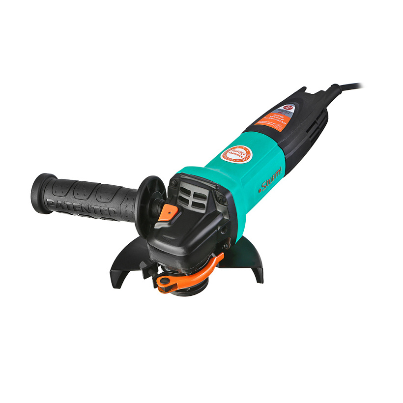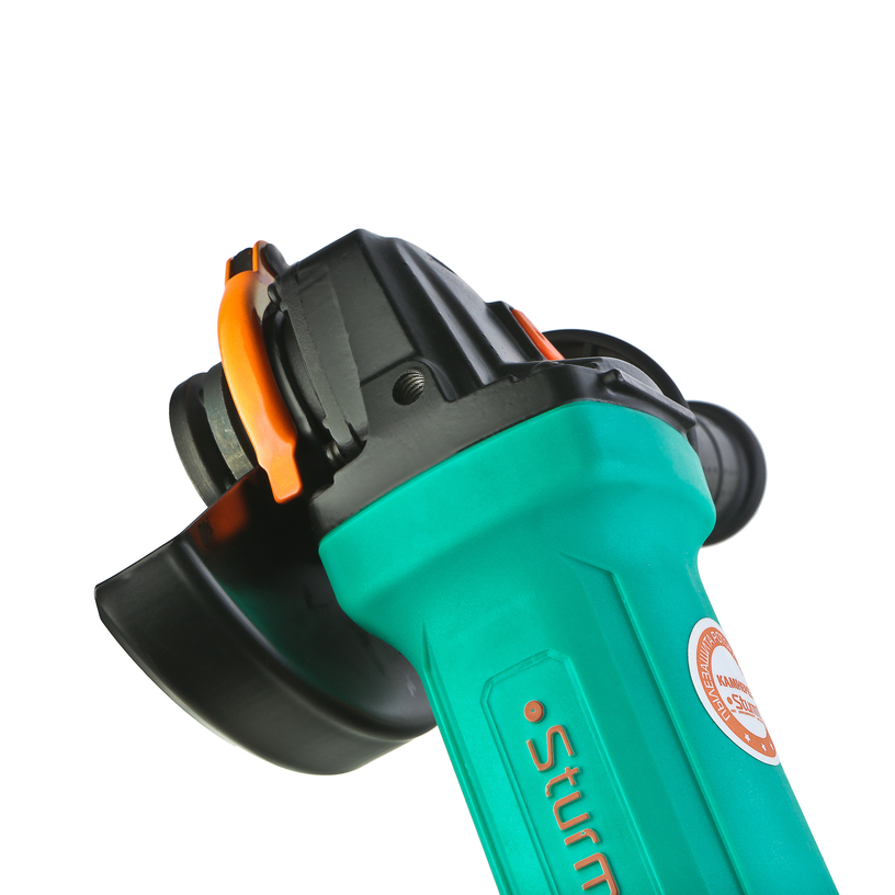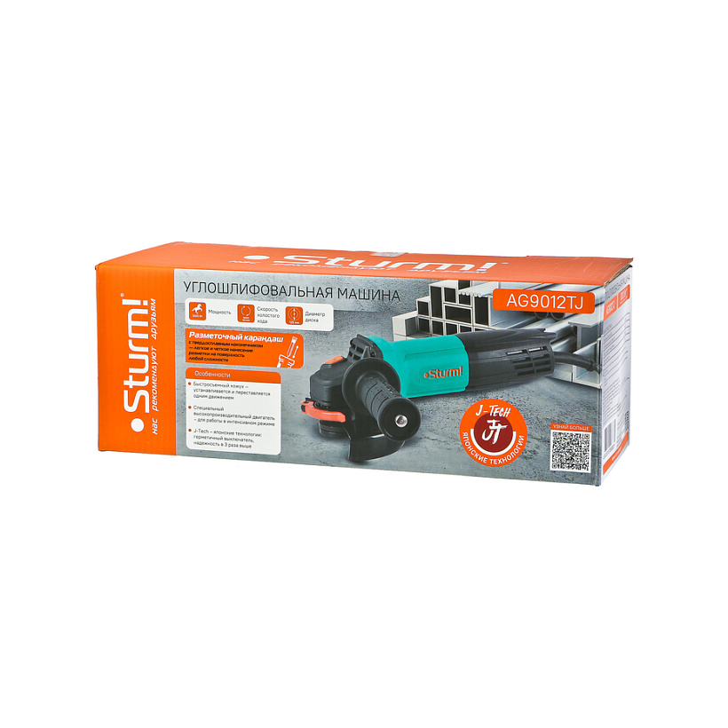 Sturm AG9012TJ – компактная универсальная болгарка (УШМ) под рабочий диаметр диска 125 мм. Инструмент разработан с учетом японской системы обеспечения защиты от разрушающего воздействия абразивной пыли на основные движущиеся узлы и компоненты и способен выполнять любые задачи по резке, зачистке, шлифованию поверхностей из металла, керамической плитки, кирпича и камня. Модель обладает оптимальными массово-габаритными показателями и выверенными пропорциями: малый диаметр корпуса обеспечивает максимальное удобство хвата, нейтральный центр тяжести позволяет уверенно контролировать инструмент в процессе работы даже одной рукой, низкопрофильный корпус редуктора клиновидной формы облегчает работу в местах с трудным доступом. Инструмент оснащен мощным 1000 Вт электромотором с бронированными обмотками ротора и статора, пылезащищенной кнопкой пуска, усиленным высокопрочным редуктором, –  все это обеспечивает достаточный запас по надежности и позволяет уверенно использовать Sturm AG9012TJ для работ с большим количеством абразивной пыли. Модель проста в эксплуатации и обслуживании. Снабжена быстросъемным защитным кожухом, который надежно фиксируется при помощи специального зажимного рычага – это дает возможность при необходимости быстро изменять положение кожуха, не прибегая к помощи вспомогательного инструмента, а также удобной патентованной рукоятью со специальным твердосплавным карандашом для нанесения разметки на поверхности любой сложности, включая ржавые, влажные и маслянистые.
